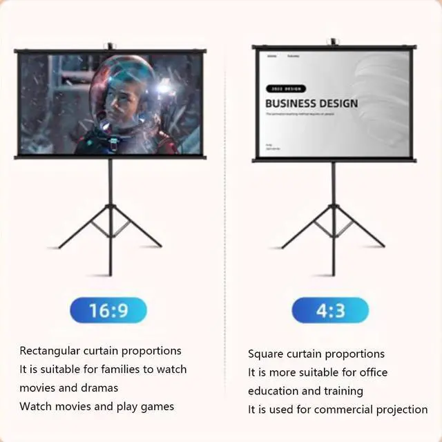 Lightweight and detachable tripod, the projector screen stand is very durable and not easy to bend, deform, and break. The bracket is not only sturdy but also lightweight. The projection screen is paired with grounding pegs and ropes to make it sturdy enough for outdoor use, and the outdoor projector screen comes with an instruction manual for quick setup and start-up in just a few steps. Very quick and easy. The detachable crossbar is easy to assemble without tools, and the tripod can be opened quickly. Ideal for moving locations quickly in less time