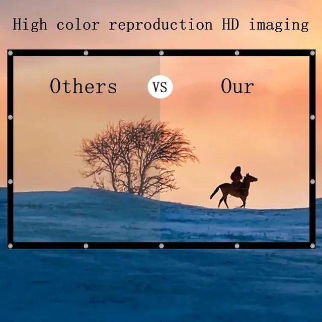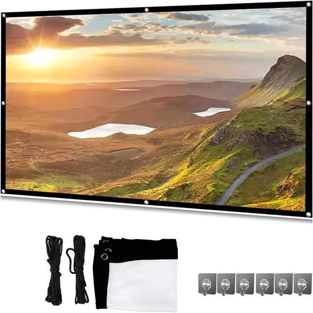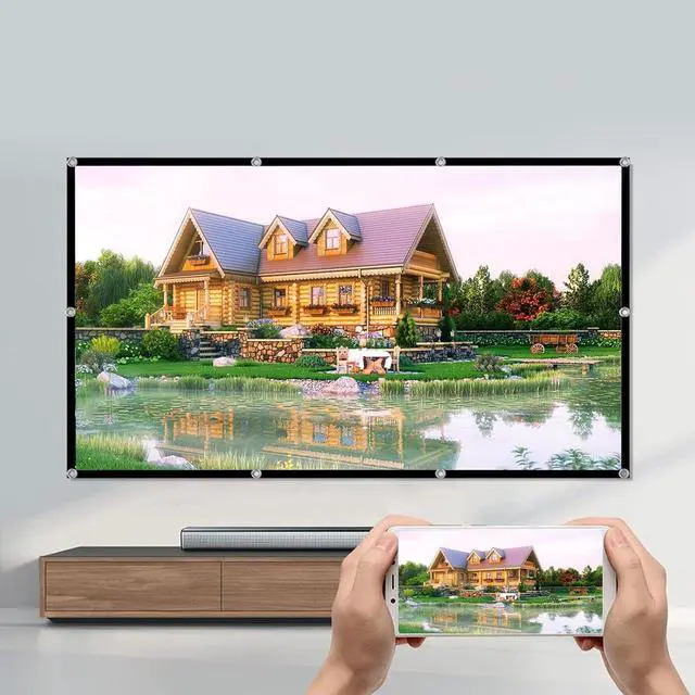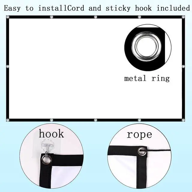 The projection screen is easy to install and can be installed with hooks/lanyards, providing a better viewing experience and stable images, and is flexible and convenient to use and install.