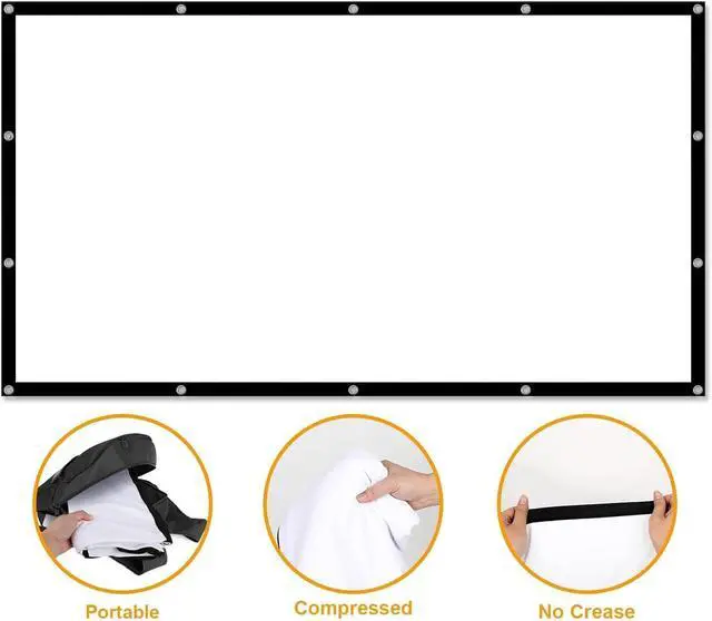 The projector screen is foldable and portable. You can fold the screen into a small size, put it in a backpack or suitcase, and carry it with you. It will not leave creases no matter how you fold it.
