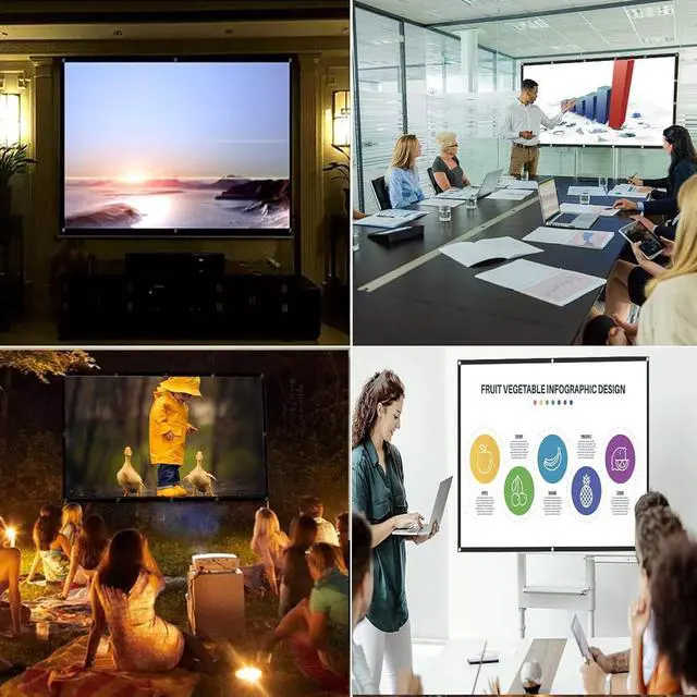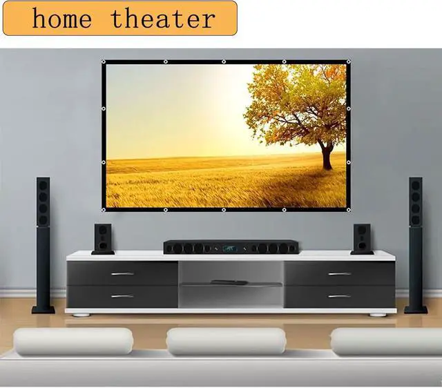 The projection screen is made of high-quality PVC, which is clear and bright. Thickened and smooth, it will not wrinkle when folded/squeezed, not easily damaged, and has a long service life, making it an ideal projector screen.