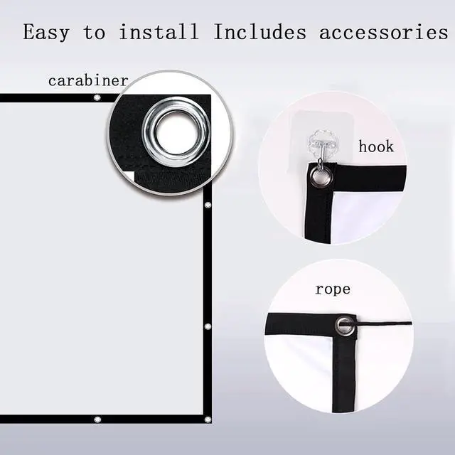 Package includes: projection screen x1, hook, lanyard