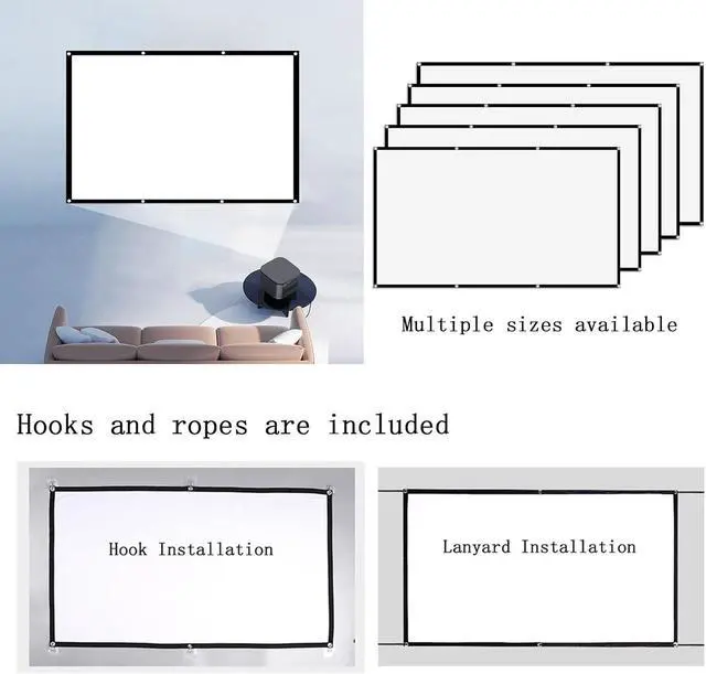 The solid portable projection screen can be easily fixed on the wall/bracket using hooks and ropes. It is simple to use, easy to install and disassemble, saving time and effort. (Comes with sufficient mounting accessories)