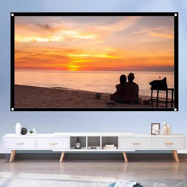 The projection screen is easy to install and can be installed with hooks/lanyards, providing a better viewing experience and stable images, and is flexible and convenient to use and install.