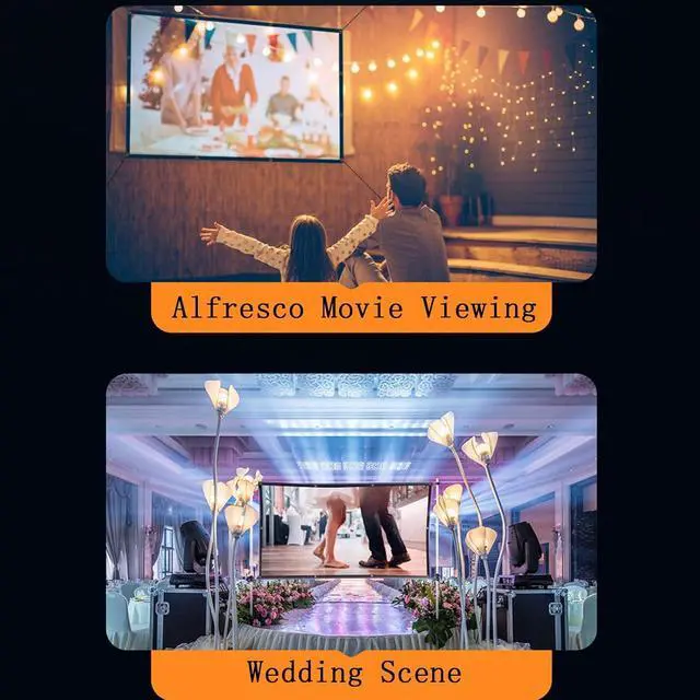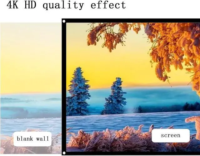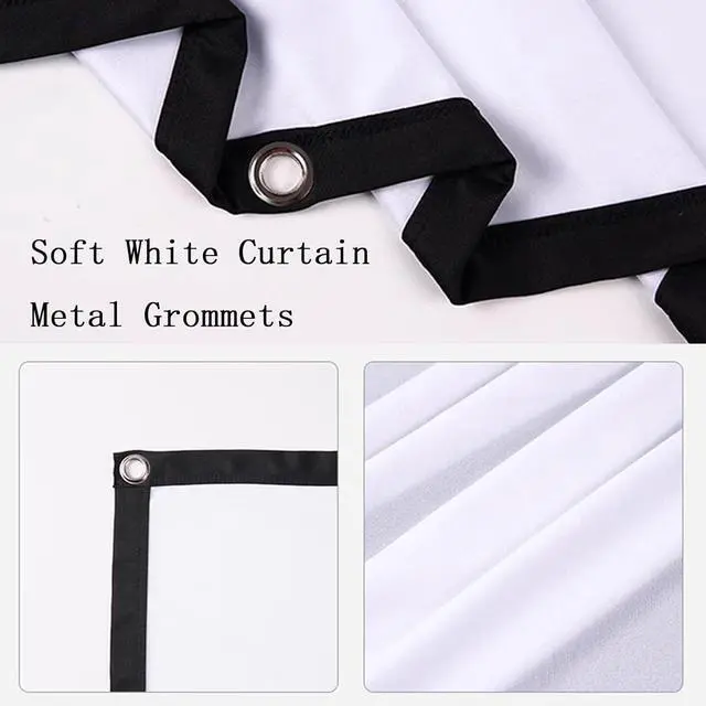 The wrinkle-free movie screen is made of PVC, which provides clear images, making the movie picture more realistic and the colors more restored, and comes with a black light-blocking frame to improve the image focus.