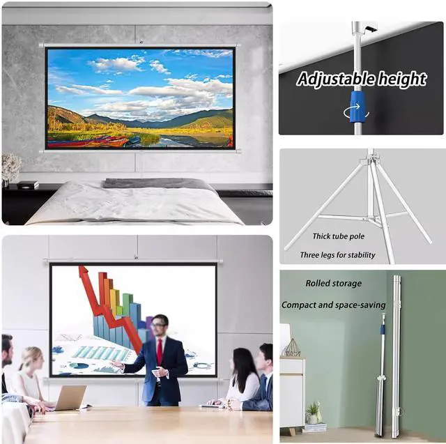 [Multi-Functional] This projector screen is suitable for a variety of uses, including business presentations, movie nights, and games. Whether you're in a conference room or living room, this screen allows you to enjoy an immersive viewing experience.