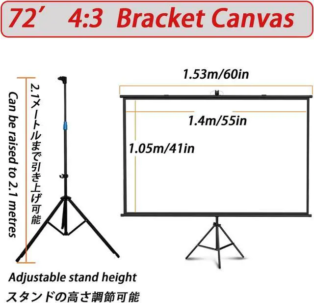 • This projection screen with stand has two ratios: 4:3 screen ratio is relatively square and suitable for off