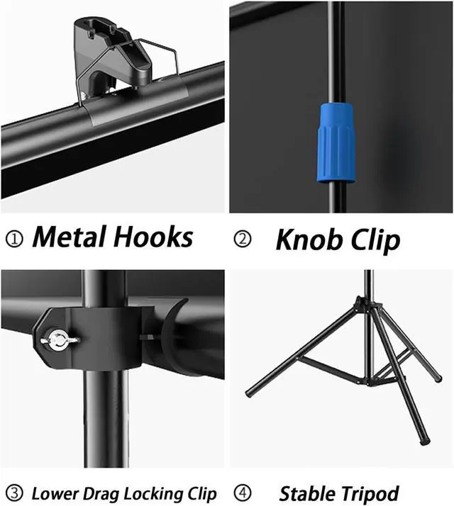 Adjustable Tripod: Compared with the classic hanging projection screen tripod, the tripod screen has been upgraded with smart design. The new design effectively locks the independent stand and screen together, making it very easy to move without worrying about tipping over due to balance issues. You can also adjust the height of the stand at any time to achieve the best viewing angle.