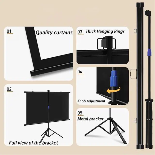 Projection Screen with Stand Indoor Projection Screen with Black Backing, 4:3, 16:9 HD Premium Anti-Wrinkle Tripod Screen for Bedroom RV Movie Night