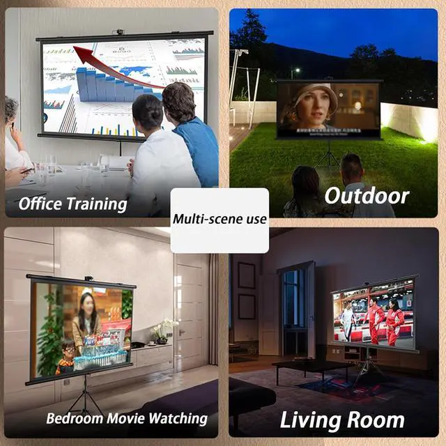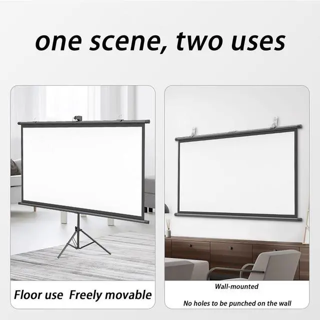 Use it anytime, anywhere: Standing and wall-mounted, the versatile portable projection screen can be mounted on the wall, providing a variety of placement options. Ideal for outdoor movies, indoor movie viewing parties, and classroom and office presentations