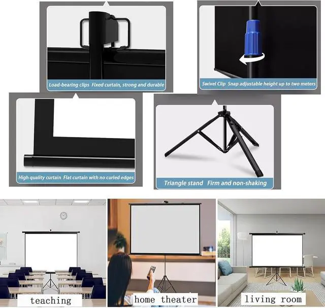 Vivid and clear images: The indoor projector screen uses durable thick materials and an all-black backing to deliver clearer images, vibrant colors, and no color cast whether you watch movies indoors or outdoors. It comes with an adjustable stand that can be raised to 2.1 meters