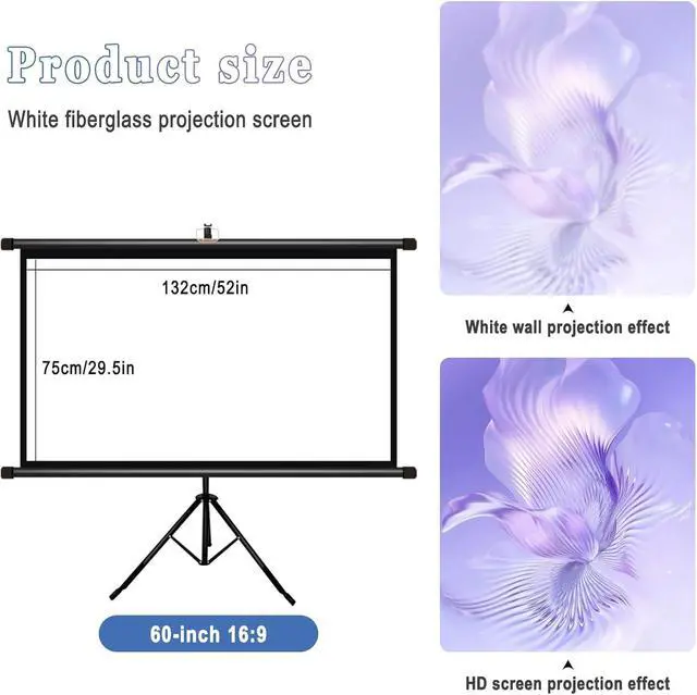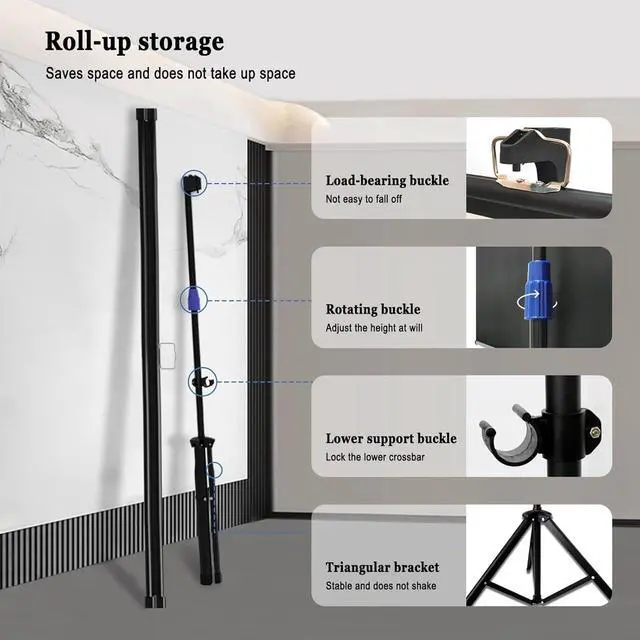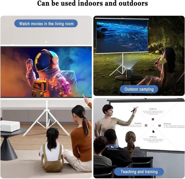 Easy to carry: The stable tripod bracket allows the projection screen to be placed stably on the ground, portable installation, and can be compactly stored when not in use, placed in the gap between furniture or in the trunk of a car