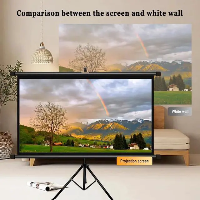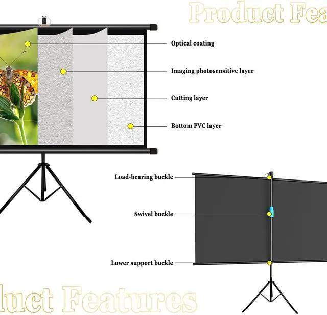 Immersive viewing: Outdoor Projector Screen with Stand Tripod, The screen surface is optically coated, which can reproduce the projected image in real and high definition. The ultra-wide-angle design and wide field of view make viewing no longer restricted by the venue, and you can enjoy an immersive experience