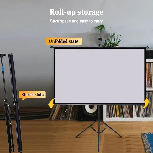Space saving: The height of the bracket can be freely adjusted to meet different viewing environments. When not in use, the projection screen can be rolled up to save space. The screen is not easy to wrinkle when used again