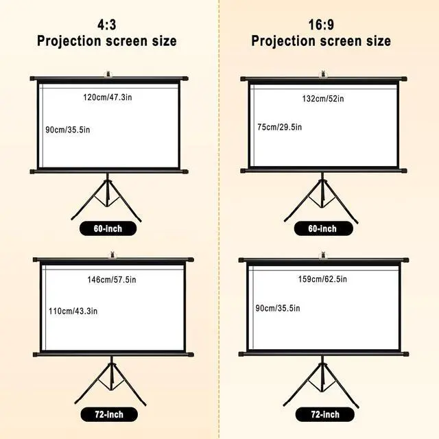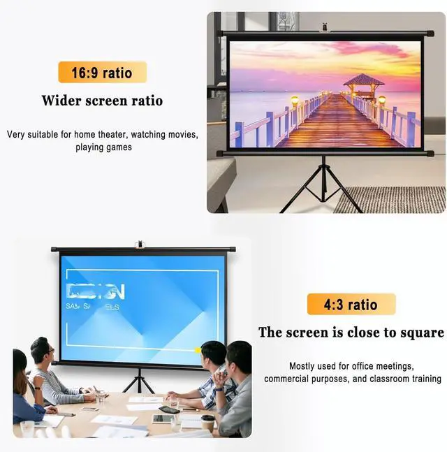 High brightness gain: Video Projection Screen Home Theater, The screen size is 16:9/4:3 format, which can meet most of your uses. Whether it is a business presentation or a home theater, it can provide high contrast and high brightness gain for video projection
