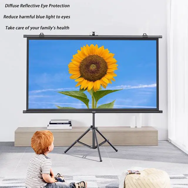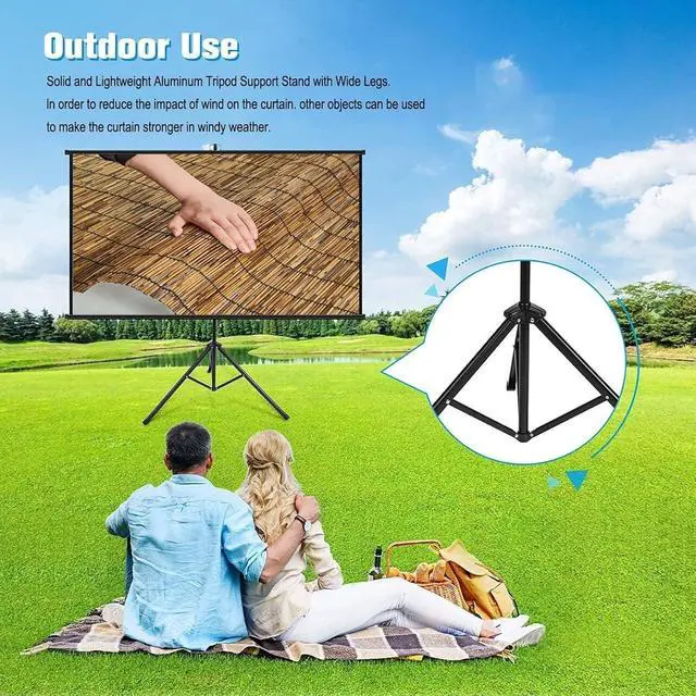 Adjustable Tripod: Sturdy alloy tripod provides excellent stability and support for your portable projector screen. You can also adjust the height for easier viewing. Can be raised to 2.1 meters