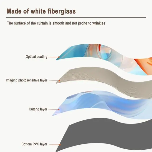 Wide field of view: 4K HD Projector Screen, Diffuse reflection imaging, the light is not directly projected into the eye, but evenly scattered, so there is no visual fatigue after long-term viewing, with a wide field of view, and multiple people can watch together