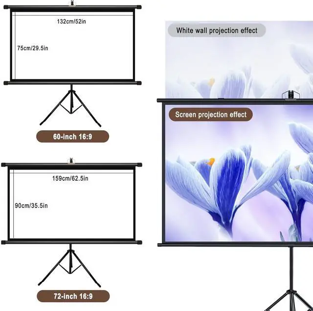 Roll-up storage: Portable Pull Down Projector Screen, Roll-up curtain design, 4:3/16:9 two screen ratios, can be used after unfolding, can be manually stored when not in use, simple and easy to operate, save space