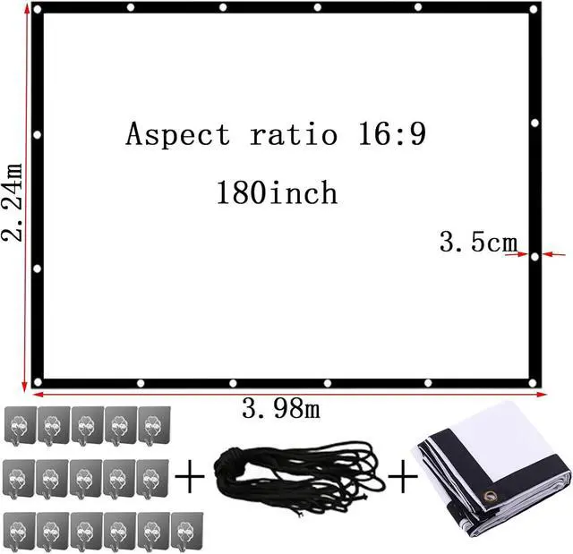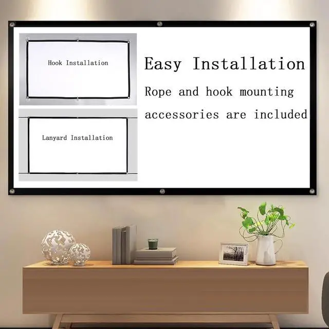 The outdoor movie screen comes with all the necessary tools, hooks for indoor wall installation; 2 ropes are enough for outdoor installation and can be installed in just 5 minutes.