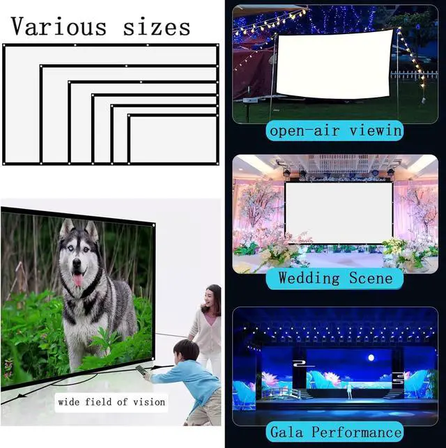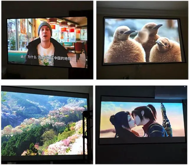 Projector screen, 4K high-definition 16:9 and 4:3 ratio, wide viewing angle, can be viewed clearly from all angles. The colors are soft and will not cause eye fatigue after long-term use.