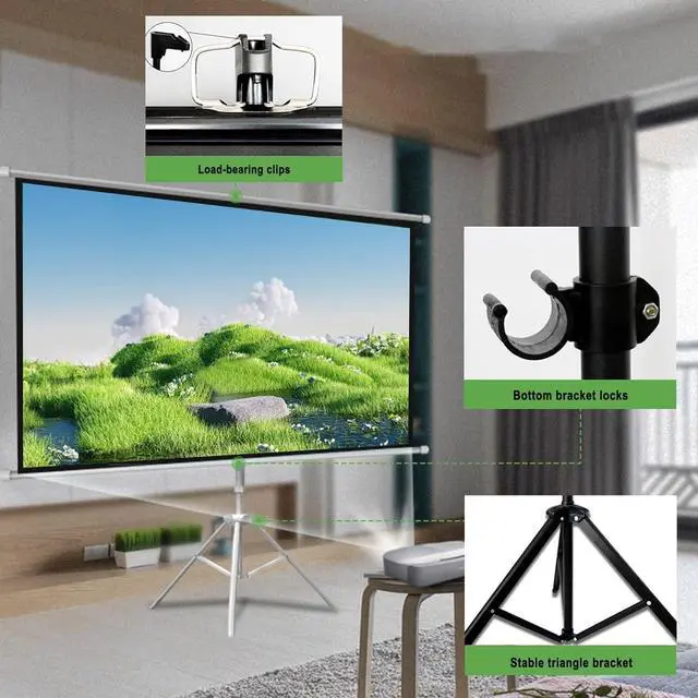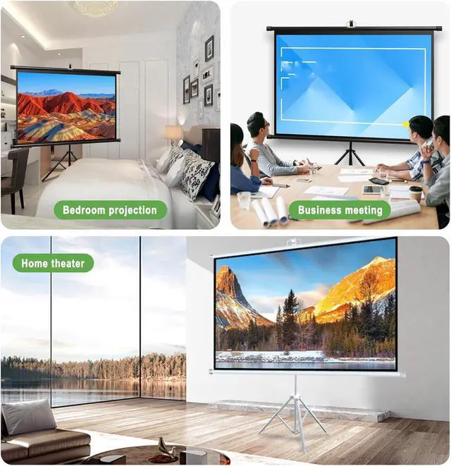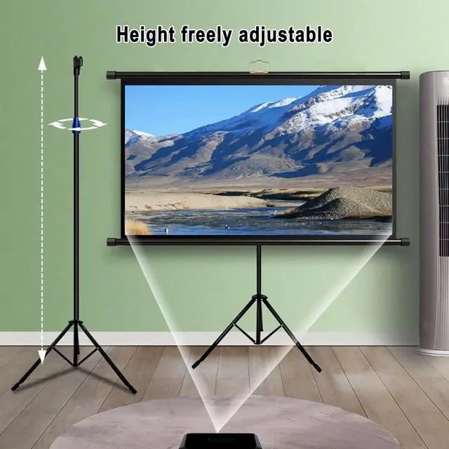 Foldable and retractable: Retractable Indoor Outdoor Moive Projector Screen, The sturdy tripod can be extended and folded, the entire screen structure is stable, the height can be adjusted at will, and it is not easy to shake even when used outdoors