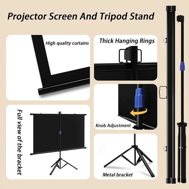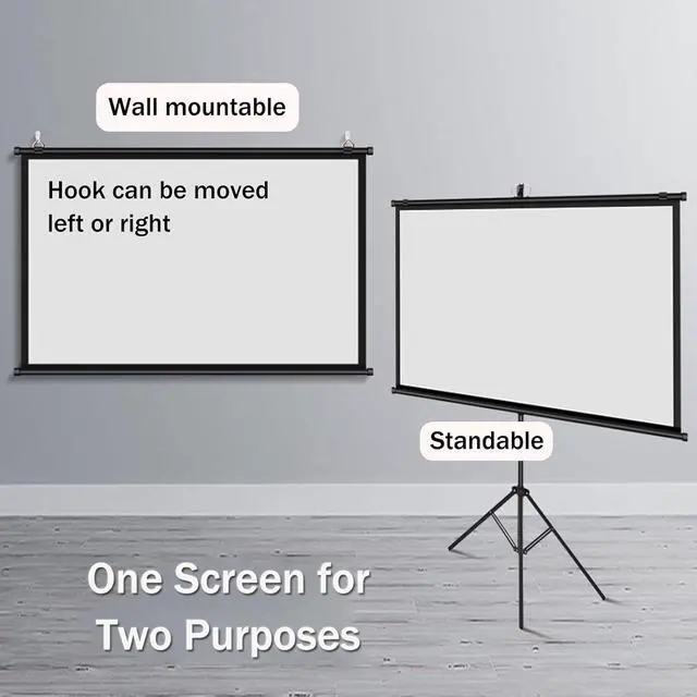 Wide range of applications: The portable projection screen works with most projectors and can be turned into a home theater or media room, allowing you to enjoy movies, sports events, photos, video games and presentations. Two ratios, choose according to use: 16:9 rectangular ratio is suitable for home use, and 4:3 square ratio is suitable for office use
