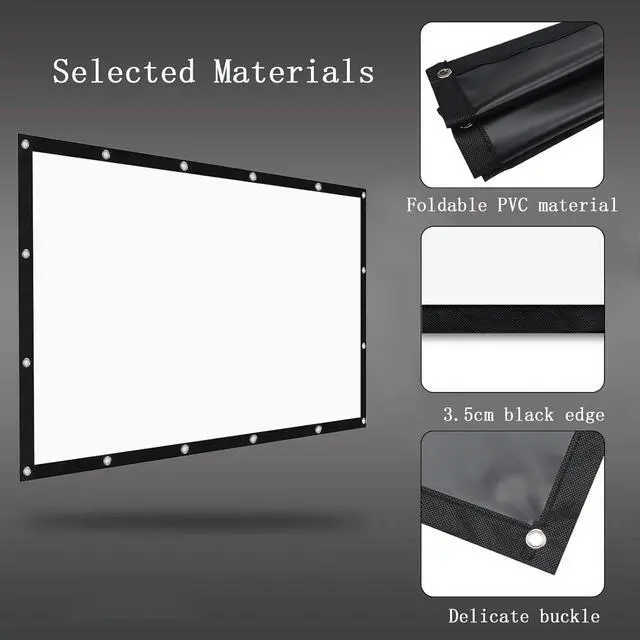 The projector screen is made of high-quality PVC, which enhances the image effect and gives you the best viewing experience. The projection screen is thicker and smoother, will not produce wrinkles when folded and squeezed, and is wrinkle-resistant and durable.
