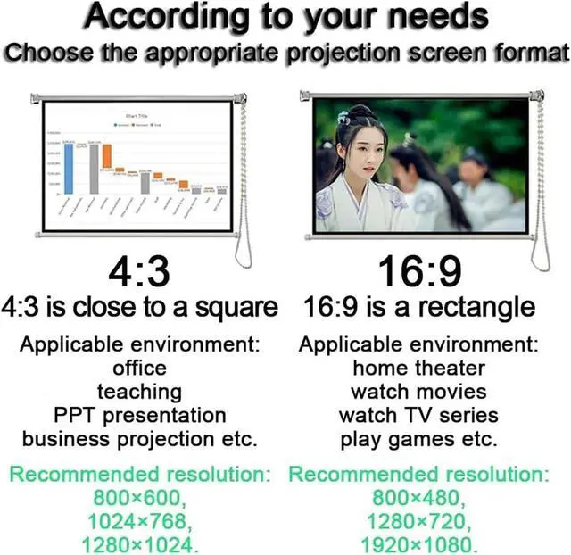 • Visual Experience Featuring a generous diagonal size and a widescreen aspect ratio, this projection screen ensures a truly captivating visual experience. Whether you're watching your favorite movies, sports events, this screen guarantees true to life images