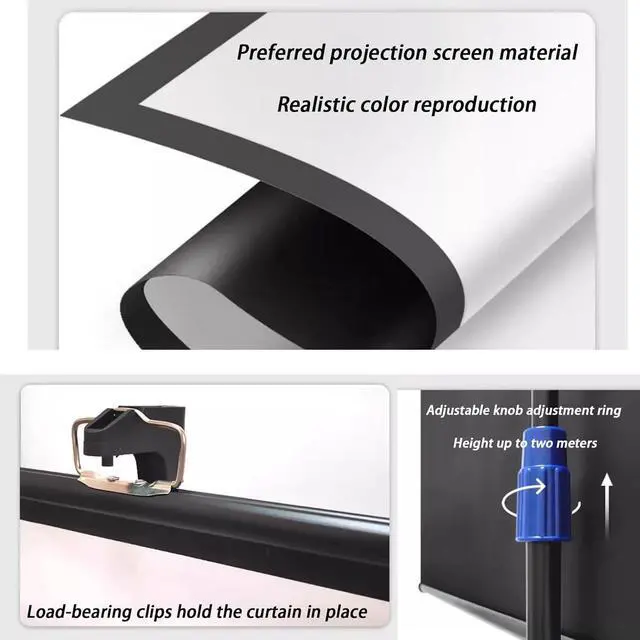 Adjustable Tripod: The movie projection screen features a stretchable, foldable, adjustable aluminum tube with spring tension on both ends to provide excellent stability and support for the portable projector screen. You can adjust it to 2.1m for better viewing.
