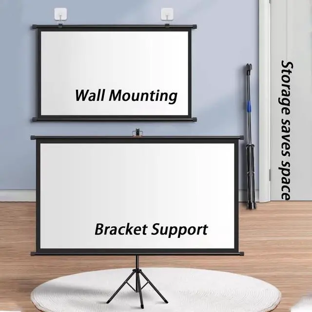 Two ways to use: Detachable design, the projector screen can be installed on the wall and supported by a bracket, easy to store, portable and can be stored when not in use. About installation: Make sure to install it in a flat and stable place.
