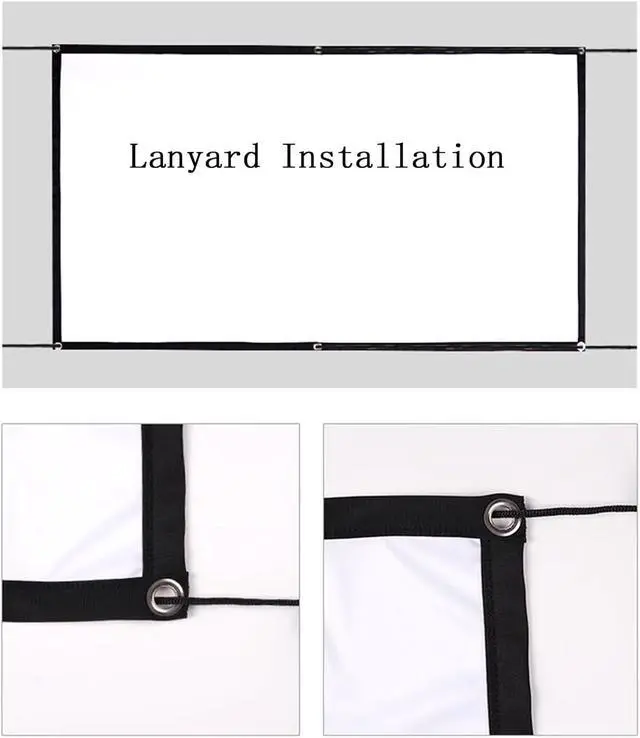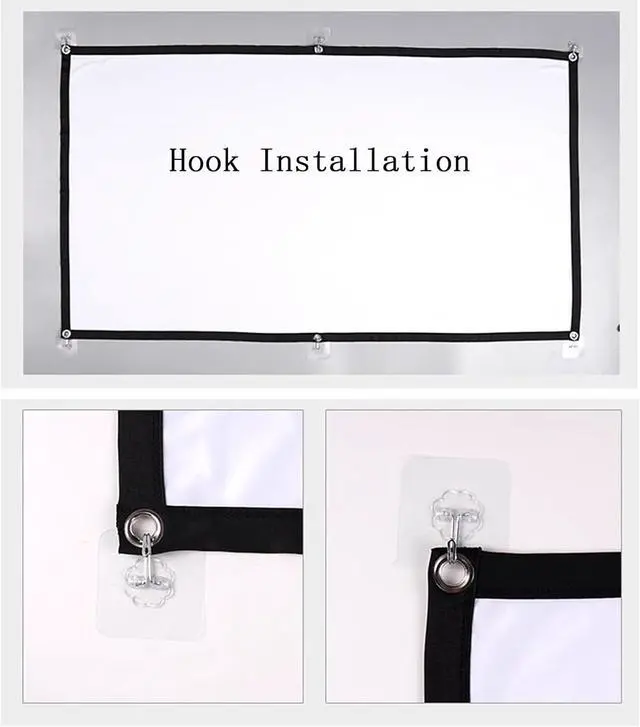 The projection screen is easy to install and can be installed with hooks/lanyards, providing a better viewing experience and stable images, and is flexible and convenient to use and install.