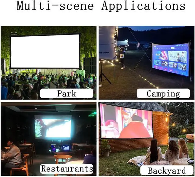 Projection screen is ideal for home, school, office, wedding, church or outdoor movie screening; can be used for presentations and other public displays.