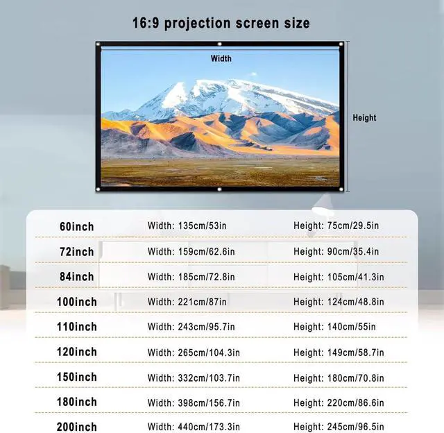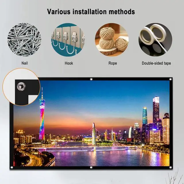 Easy to install: It can be folded in the storage bag when not in use to save space. The metal hanging hole makes it easy to hang with hooks, ropes and other tools. It is suitable for home theaters, camping trips, educational presentations, parties, etc.