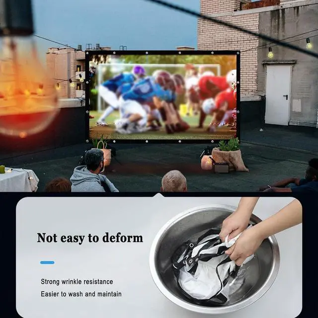 Not easy to wrinkle: Home Theater Movie Screen HD Projection Screen, The double-sided projection screen is made of soft canvas material, which is not easy to crease. If there is a crease, it will return to a flat state after pulling it. It can provide high-definition picture quality and truly restore bright colors
