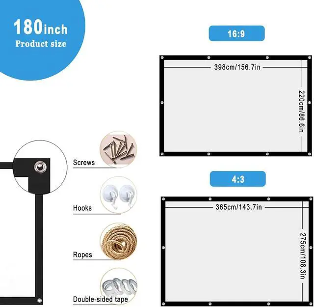 Complete accessories: The aspect ratio of 16:9/4:3 on the diagonal is very suitable for indoor and outdoor entertainment. It comes with accessories required for installation and can be easily installed even in windy conditions