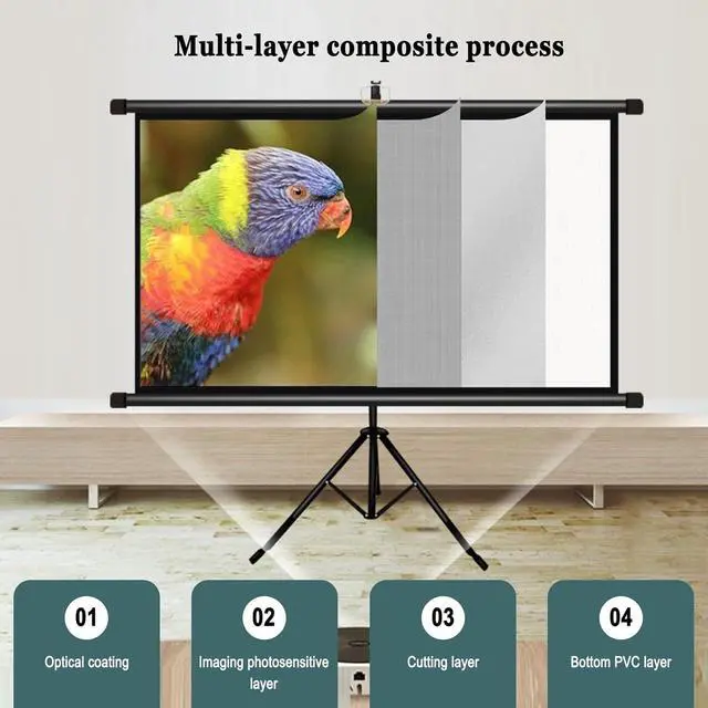Adjustable bracket: Home Theater Little Screen, The height of the bracket can be freely adjusted to meet different viewing environments. When not in use, the projection screen can be rolled up to save space, and the screen is not easy to wrinkle when used again