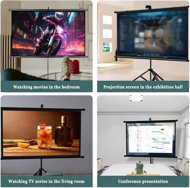 Portable design: No complicated installation process is required, it can be used with simple assembly, and one person can complete it independently. The installed projector screen can be placed stably on a smooth surface and is not easy to shake during use