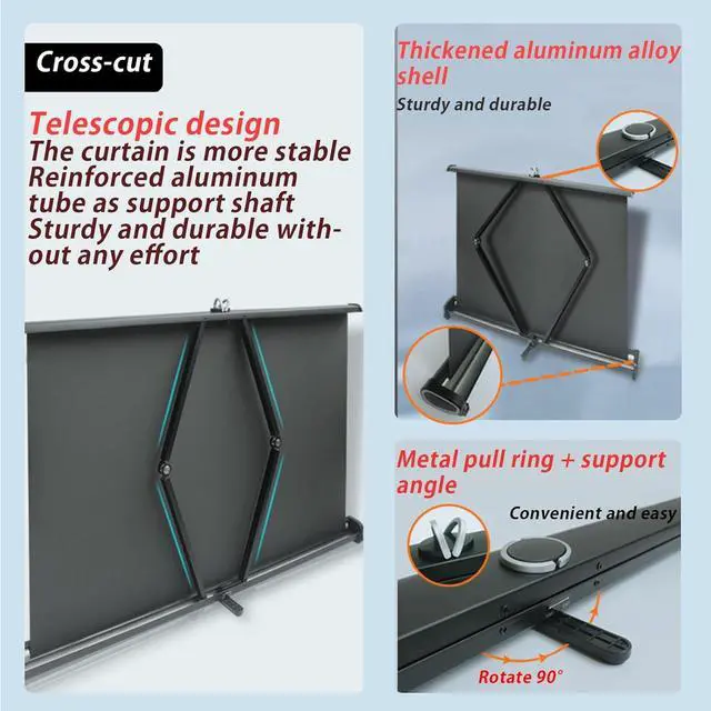 This HD foldable projector curtain is made of white fiberglass fabric with clear images and vibrant colours, the black lining and border reduces light penetration and enhances image focus and alignment. Reinforced steel tubing provides effective support and can be pulled out and stored flat. The metal casing extends the life of the screen and the sleek design adds a modern touch to any space. It is the perfect partner for home projector systems and living room projectors, combining durability and style.