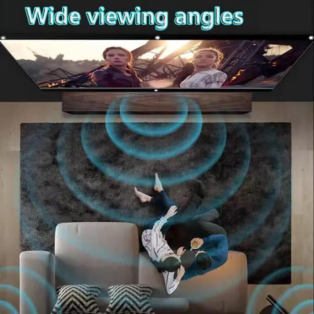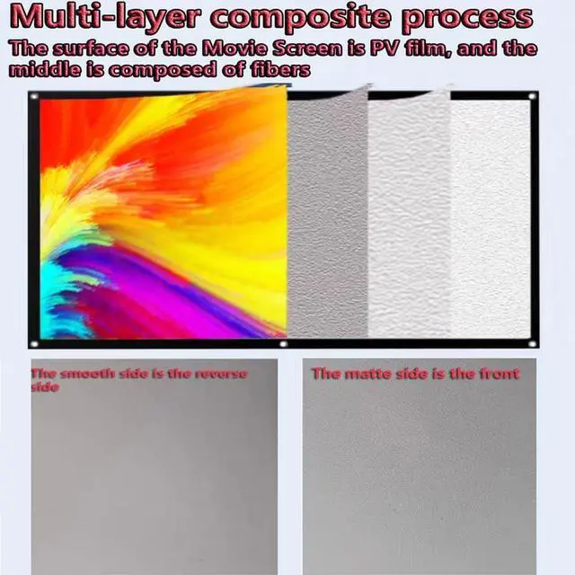 Full angle viewing: the field of view is wide enough, and the image is clear and realistic; The projection screen contains 40" 60" 72" 84" 92" 100" 110" 200" size, suitable for most movies and games