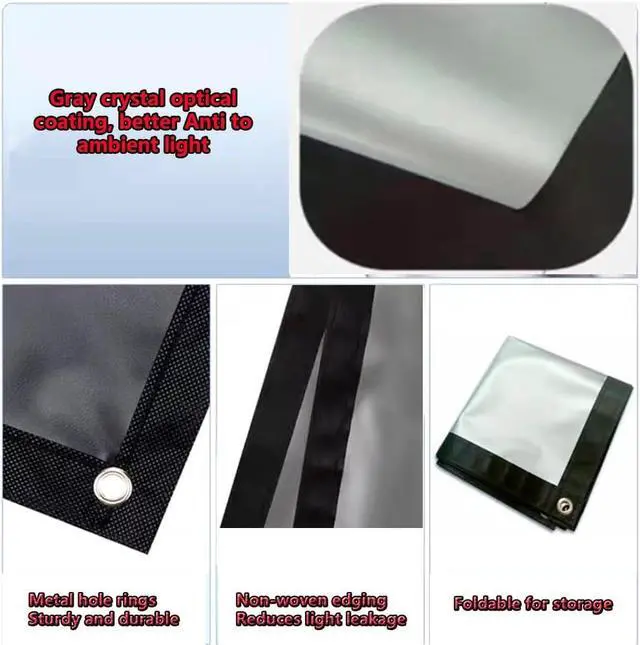 Material: Metal anti-light projection screen, natural and straight, with special gray crystal optical coating, better resistance to ambient light, good reducibility, suitable for indoor and outdoor