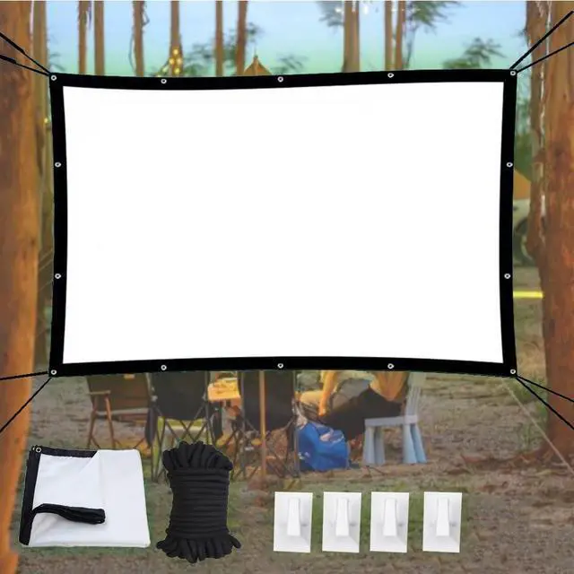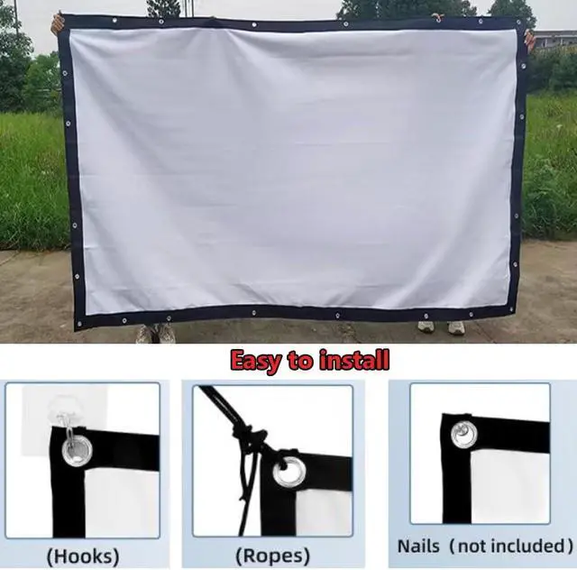 Easy to install: The projection screen comes with self-adhesive hooks and nylon ropes and can be installed in any suitable place