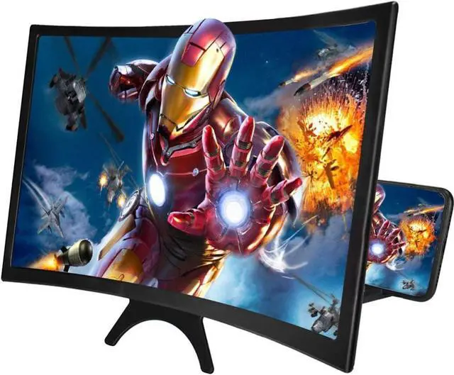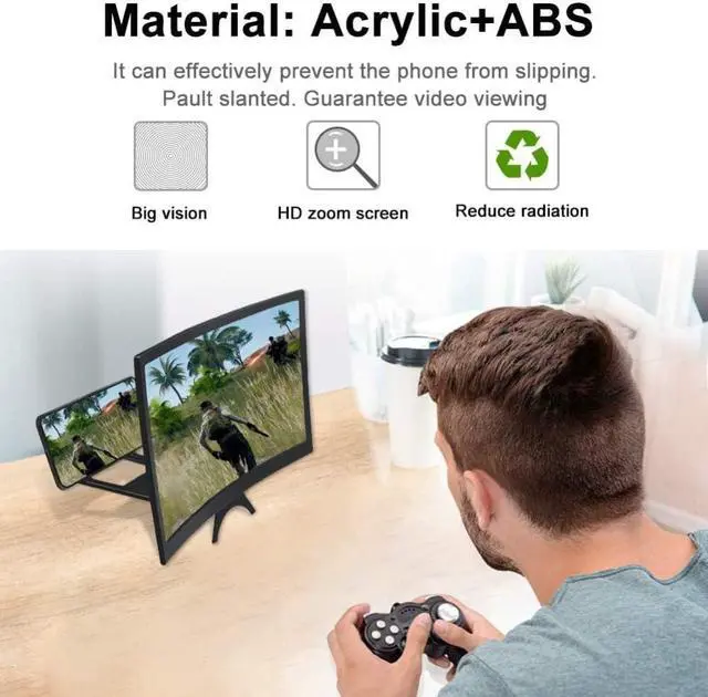 12 INCH CURVED SCREEN MAGNIFIER - Take HD zoom optical technology, ABS 3D curve screen, 3D visual enjoyment, magnifies your smartphone screen display 2-4 times, perfect for watching movies and gaming, which will reduce the discomfort and visual fatigue caused by long-term focus on the small screen.