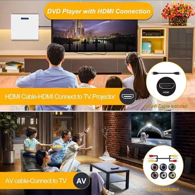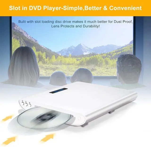 HD 1080P VIDEO QUALITYFamishow Slot in DVD player Up-converts DVD video to HD 1080p with fine detail, experiences HD picture quality and solid sound. comes with 1xHDMI output to connect with TV or projector; 1xcomposite audio/video output (RCAx3) to connect with TV; 1xCoaxial output to connect with amplifier or speaker. HDMI & AV cable included.