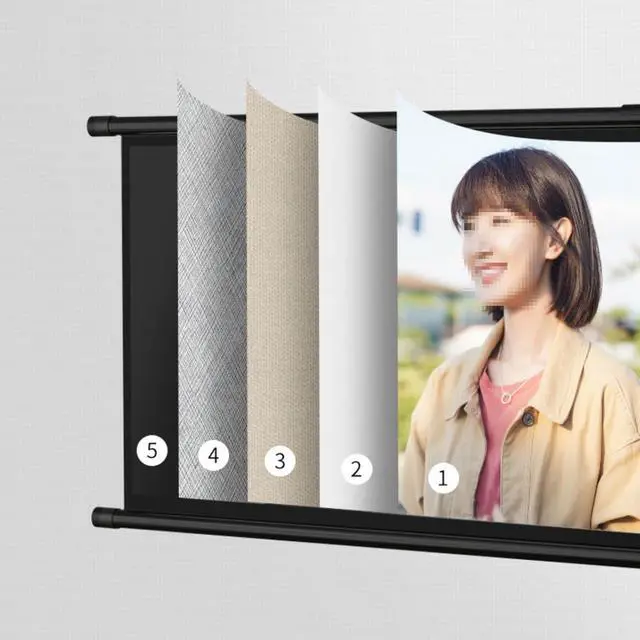 Screen materials with special optical sawtooth structure and light blocking filters perform well in ceiling ambient light