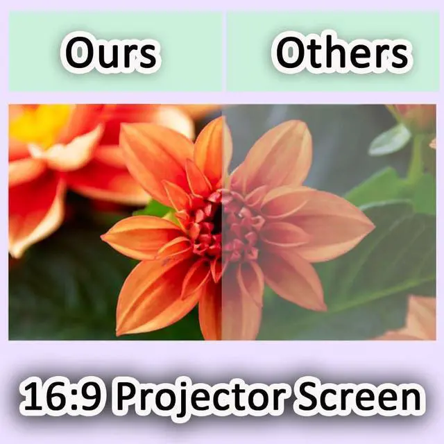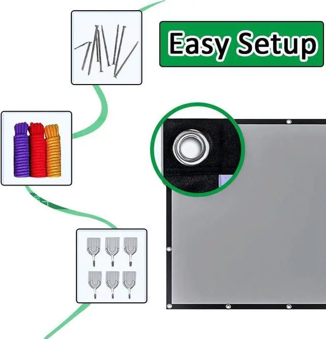 Product name: White fiberglass projection screen Format: 16:9 Product size: Diagonal size (WxH) 60in(133x75cm) 72in(159x90cm) 84in(184x105cm) 92in(199x112cm) 100in(221x125cm) 110in(250x140cm) 120in(266x148cm) 130in(290x160cm) Easy to install and remove projection screen can be mounted on the wall with nails or hung with ropes Suitable for various scene applications, It can be easily hung in various environments without being restricted by wall hanging. It is suitable for various scenes such as home theater, conference room, classroom, public area, outdoor theater, camping party, etc. Package includes: projection screen x1 Warm Tips: 1. Due to the folding screen transportation, there will be some wrinkles when you receive it, please put some heavy objects on it 2. The creases can be ironed flat, and the dust can be wiped with a wet towel 3. Since the size is measured manually, there will be an error of 1-2 inches, please understand 4. Due to different shooting light and display screens, the actual color of the product may be different from the picture, please refer to the actual product
