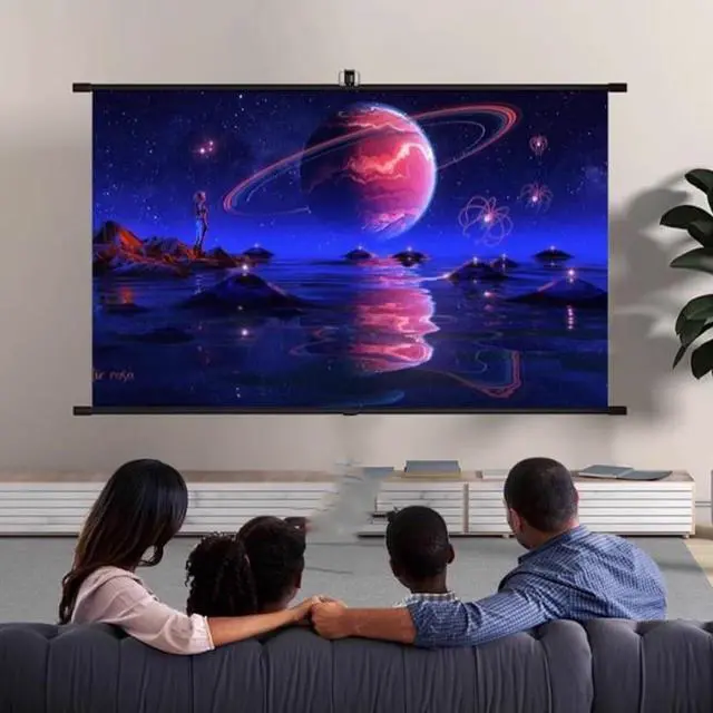 60-inch projection screen: The manual 60-inch drop-down projection screen gives you a 16:9 aspect ratio and a 160-degree wide field of view, designed for universal projection in any room, making it ideal for use in your home, office, or classroom