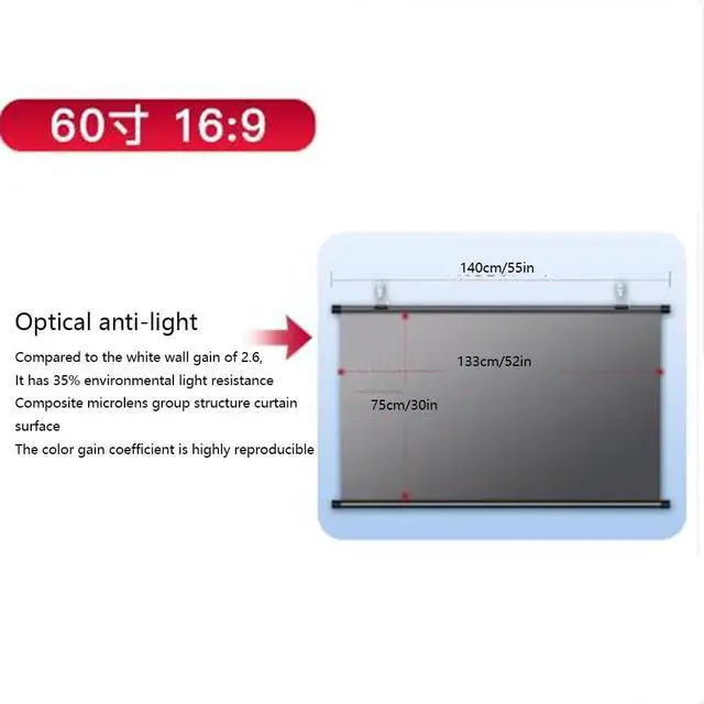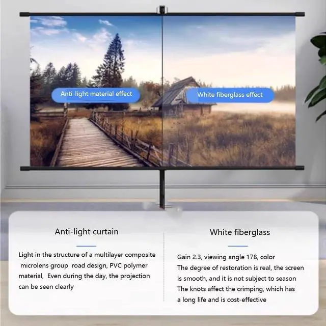 Anti-light curtain: The optical path design of the multi-layer composite micro-lens group structure, PVC polymer material, can be clearly viewed even if it is projected during the day, and the color effect is more outstanding, and the picture effect is 2.6 times that of ordinary white walls