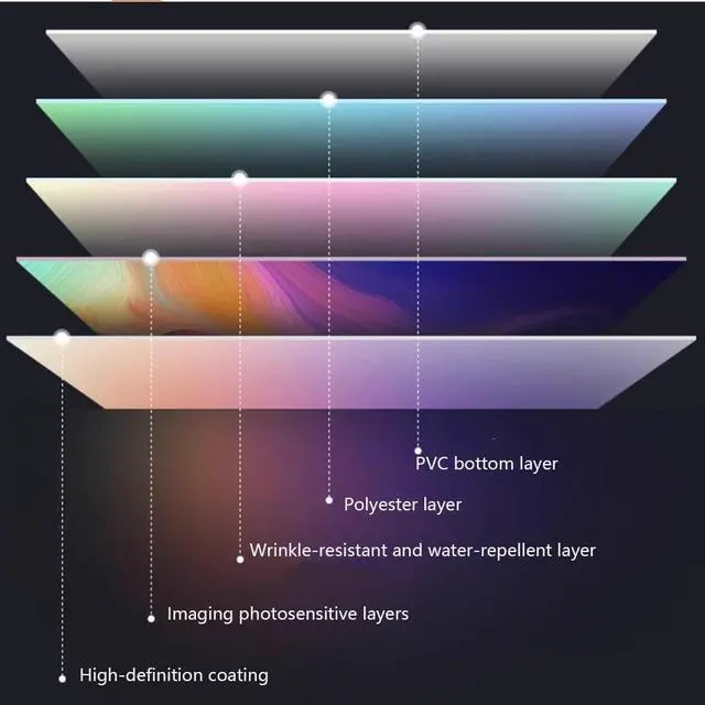 Material: The projector screen is made of multi-layer composite fabric, which makes the surface smoother and flatter. The fiber optic screen makes the image brighter and more realistic