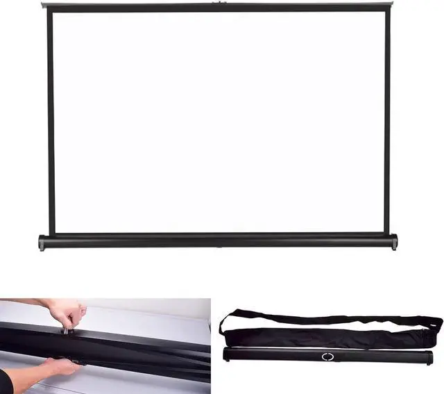 The projection screen has a retractable design and comes with a storage bag, making it ideal for home, school, office, wedding, church and outdoor movie screenings, whether in the workplace or as an entertainment device.