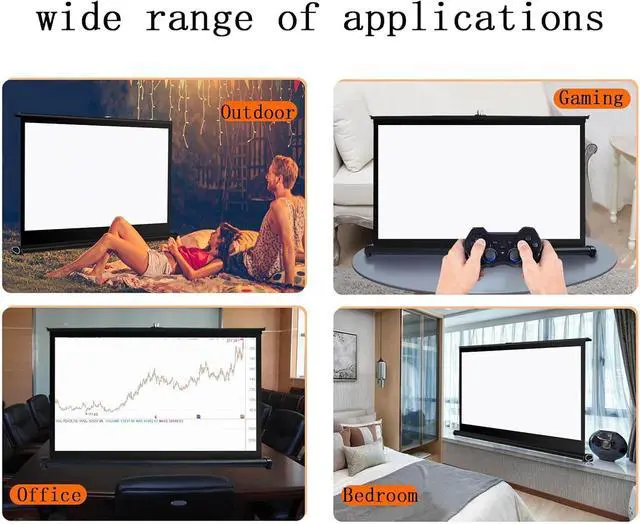 The projection screen features 30in/40in/50in (diagonal) and 16:9/4:3 screen ratio, whether you're watching your favorite movies, sporting events, or delivering impactful presentations, this screen guarantees images Clear, vivid and lifelike.