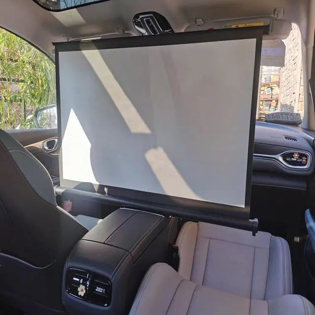 Portable retractable mobile projection screen, integrated design, easy to pull out and use by pulling the metal pull ring. The projection screen is lightweight and comes with a storage bag, which is very suitable for camping use.